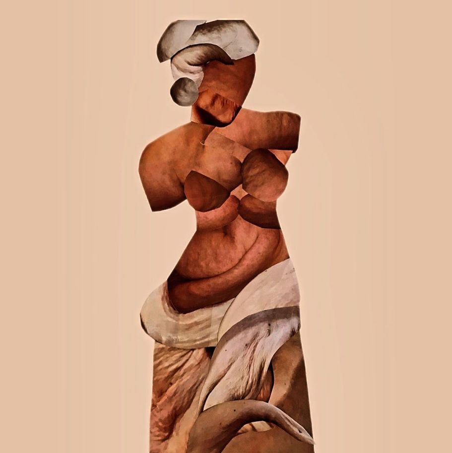 2019 collage of artists' skin, miss performing with manufactured materials (Digital Manipulation).